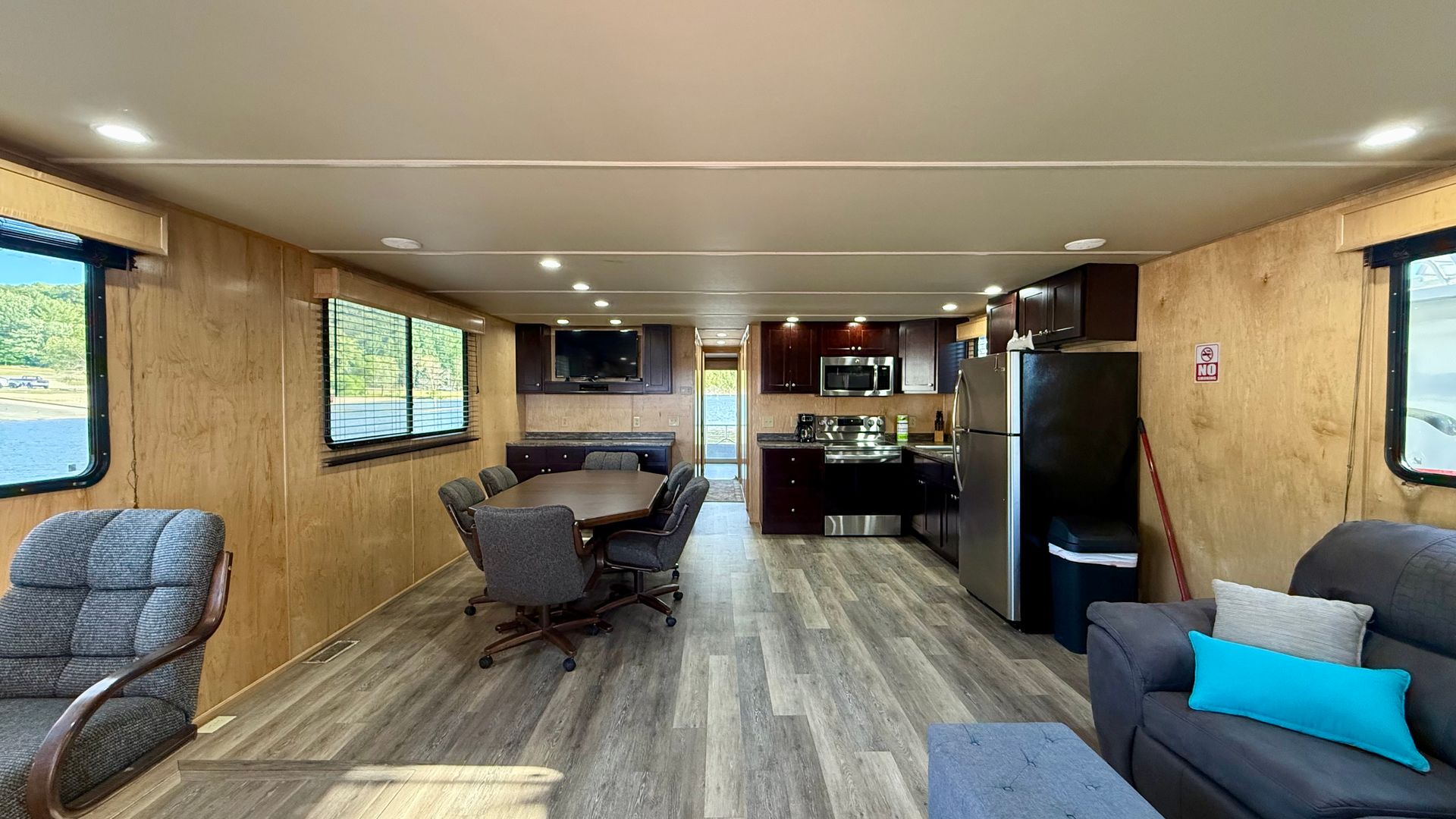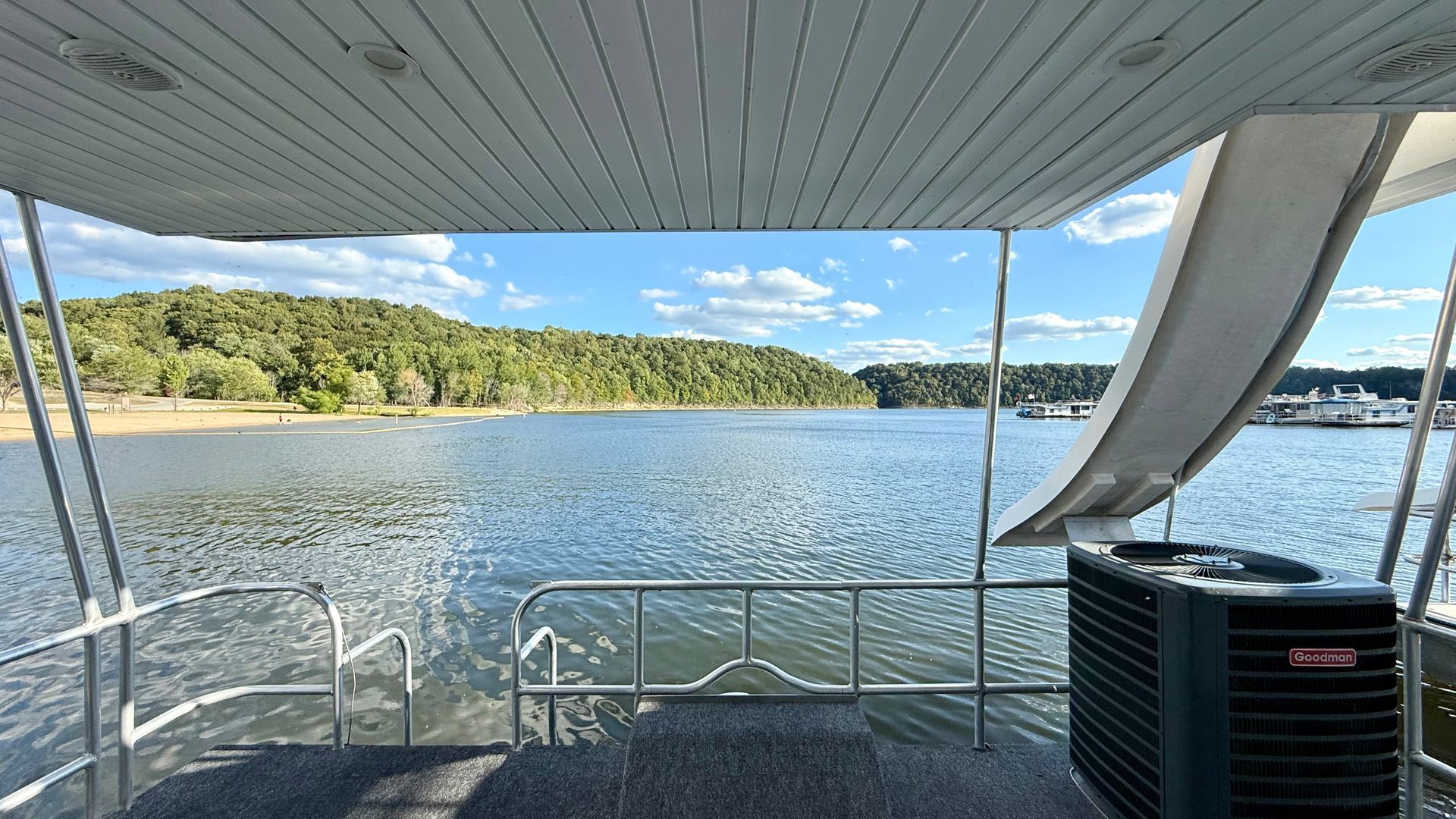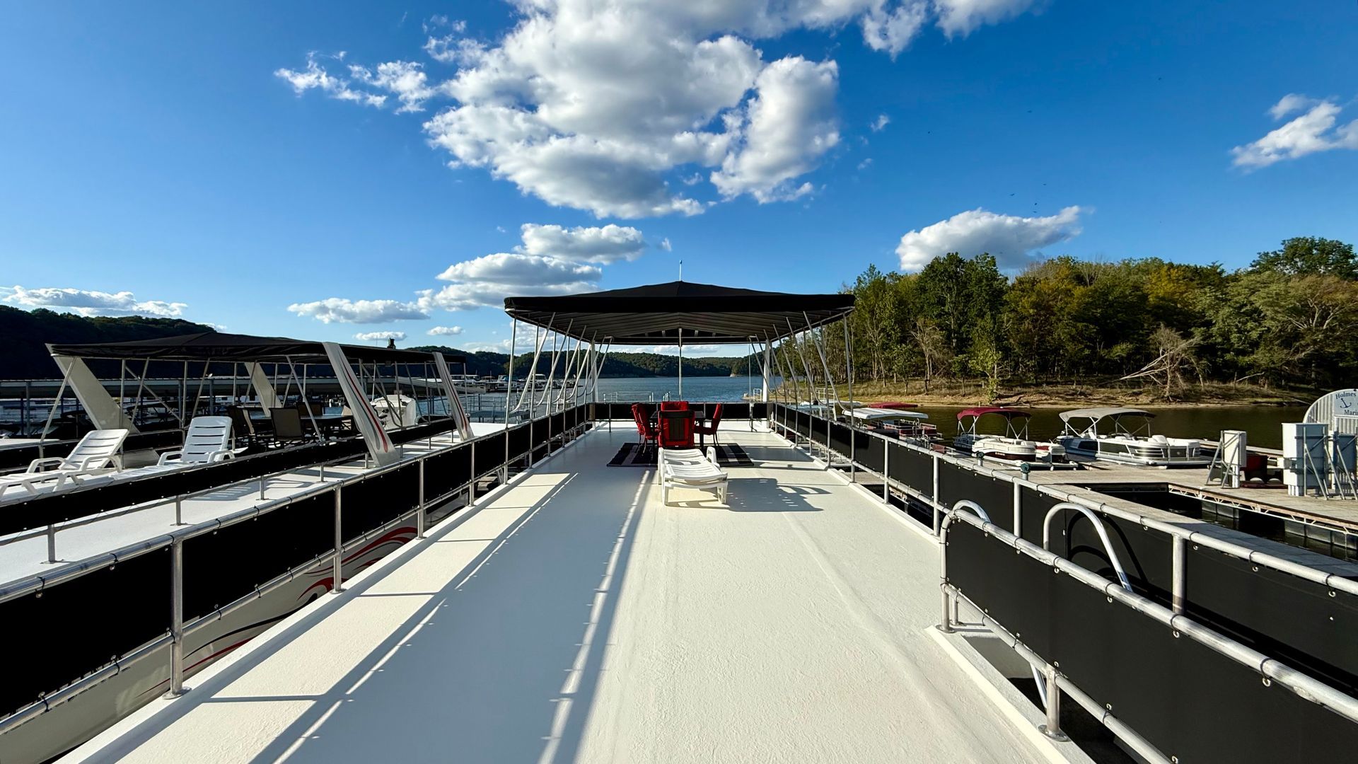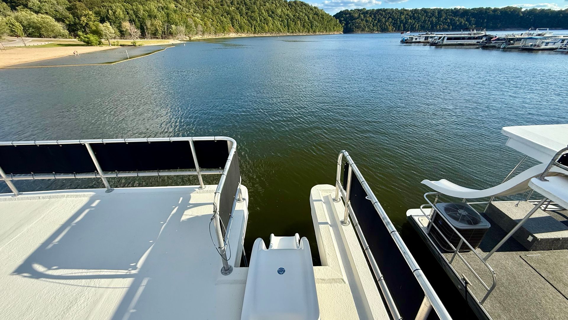 The Commodore is packed with premium features to enhance your stay, including a cuddy cabin, deluxe carpeting, and a full range of kitchen appliances such as a microwave, gas range, and refrigerator. Guests will enjoy the spacious deck furniture, ceiling fan, and the large sundeck, perfect for sunbathing and enjoying the views. With ample space, modern comforts, and water activities like the 15-foot water slide, this houseboat is designed to make every moment unforgettable.
