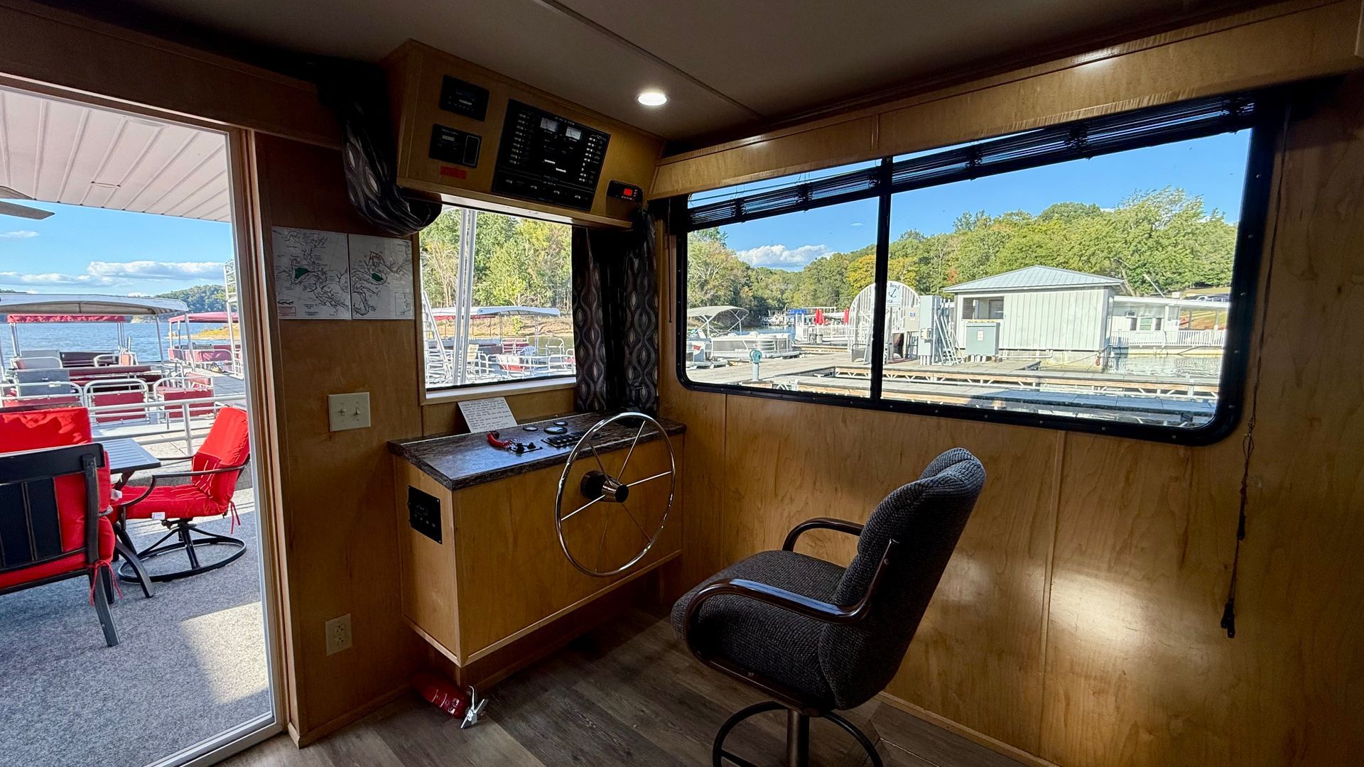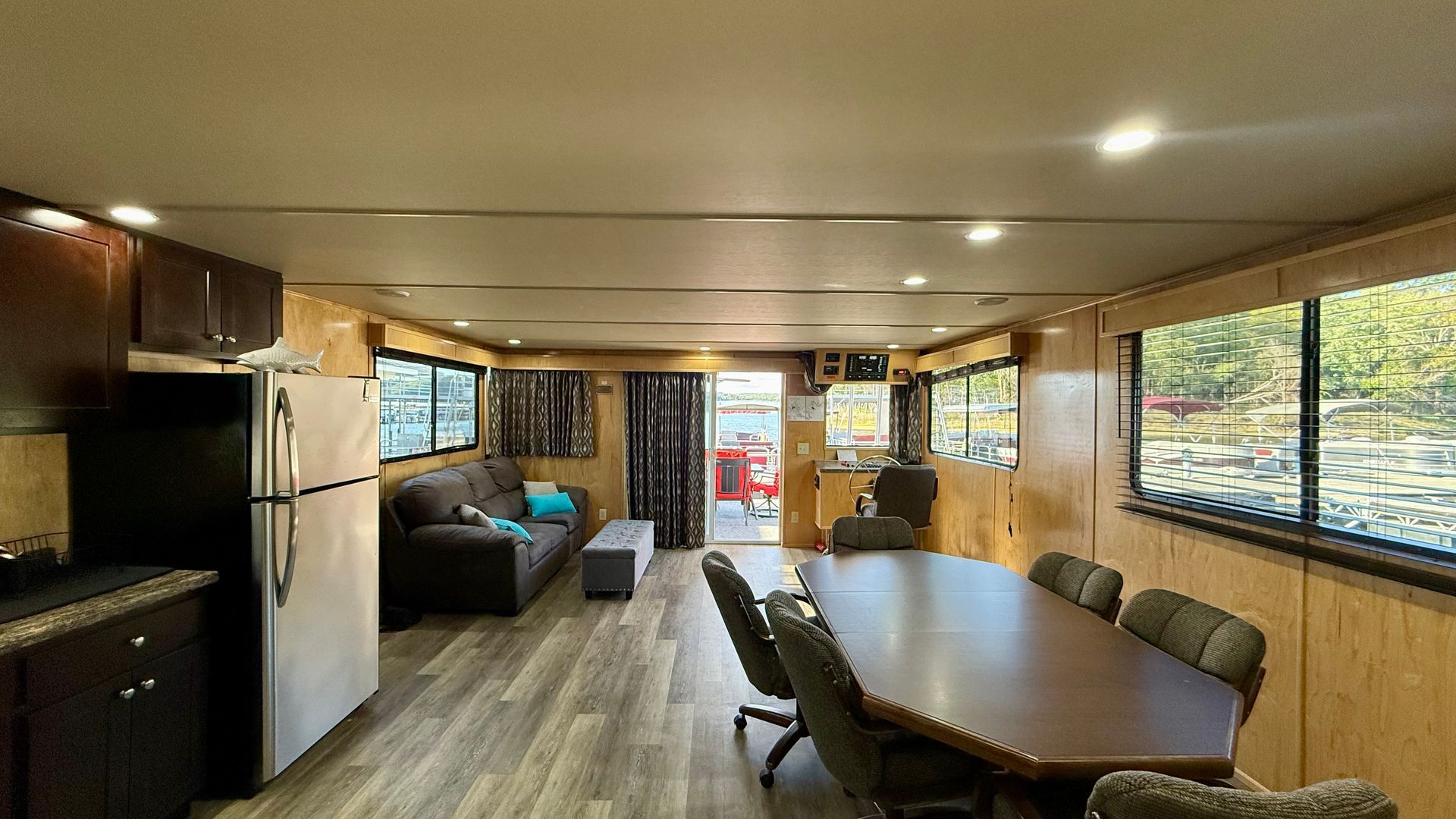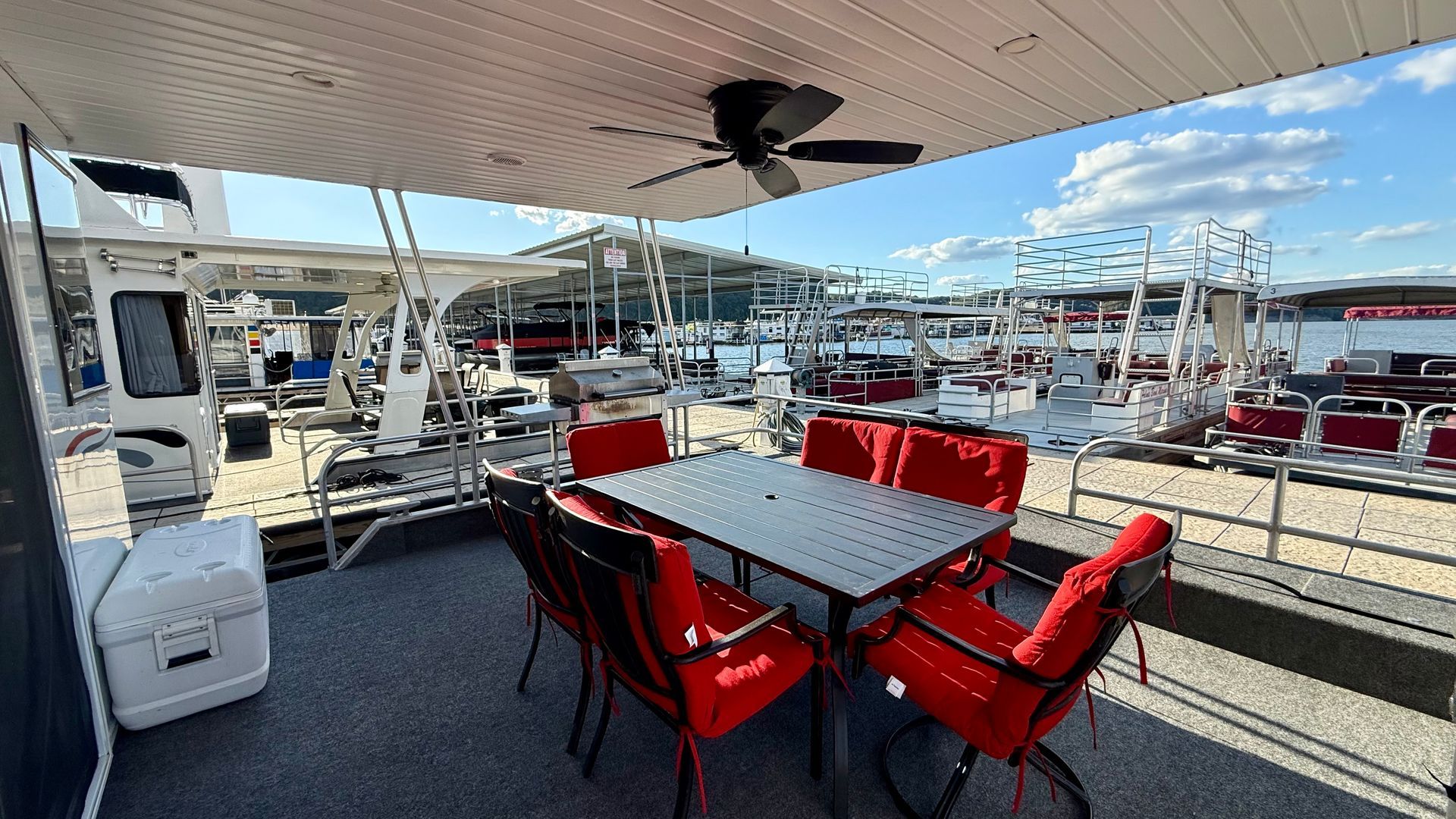 The Commodore is packed with premium features to enhance your stay, including a cuddy cabin, deluxe carpeting, and a full range of kitchen appliances such as a microwave, gas range, and refrigerator. Guests will enjoy the spacious deck furniture, ceiling fan, and the large sundeck, perfect for sunbathing and enjoying the views. With ample space, modern comforts, and water activities like the 15-foot water slide, this houseboat is designed to make every moment unforgettable.