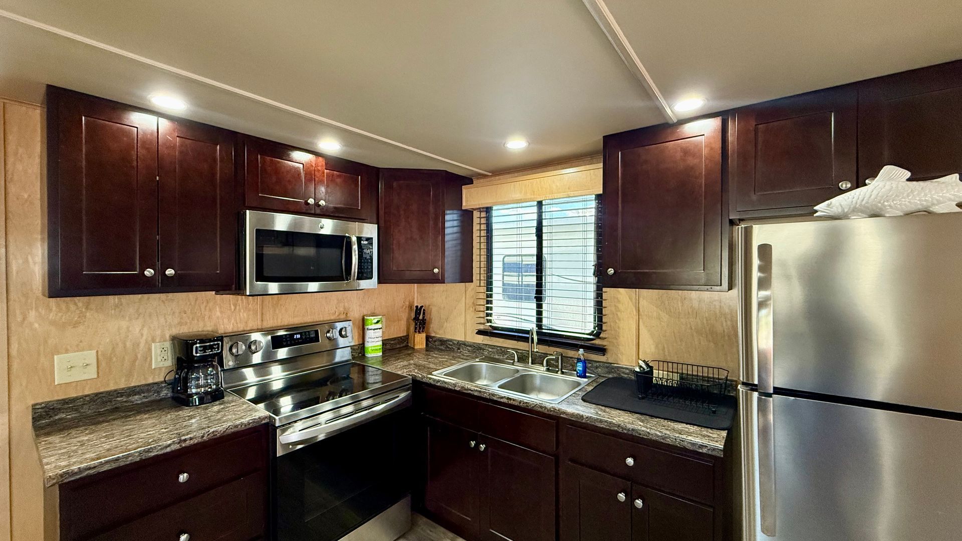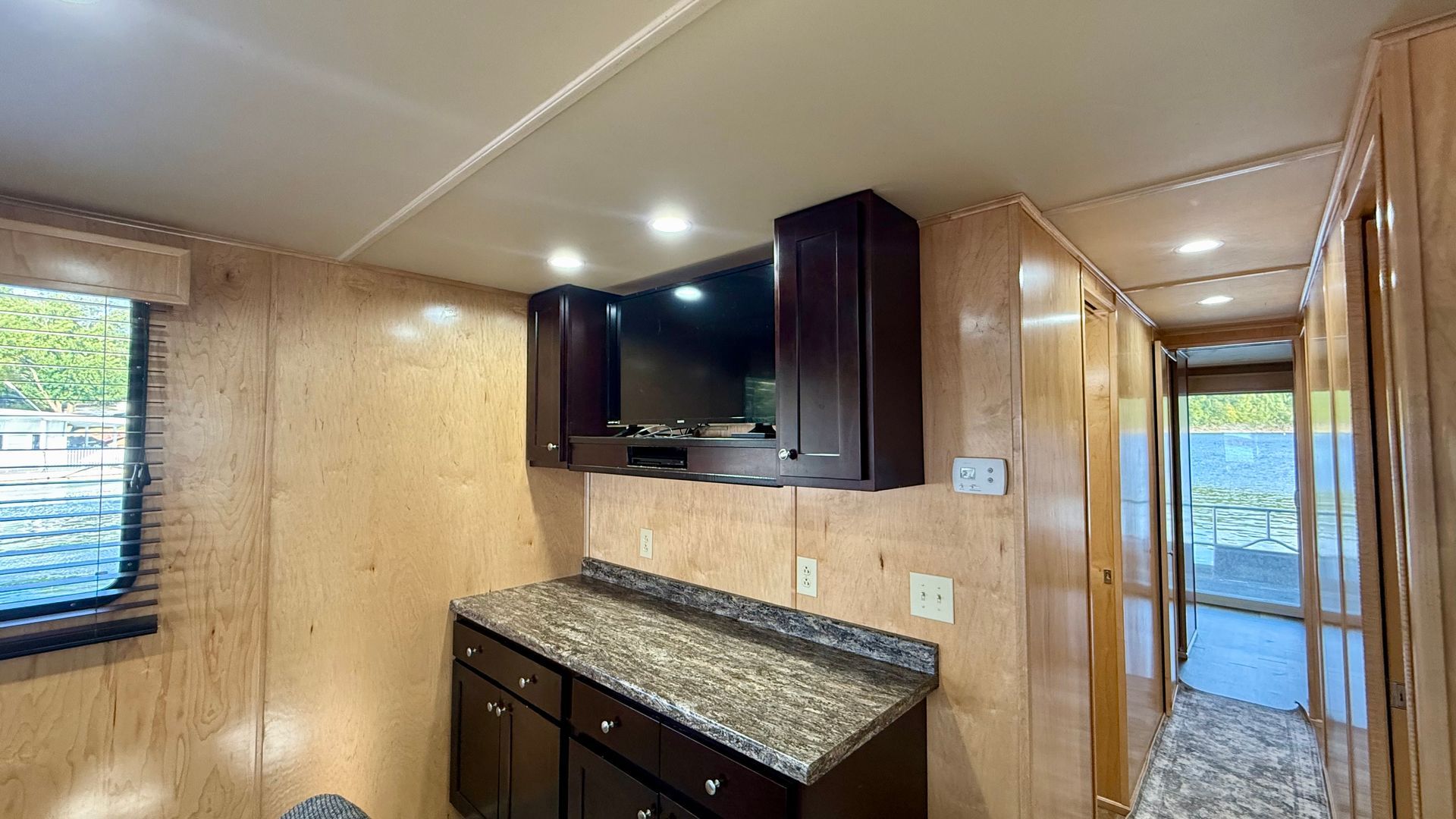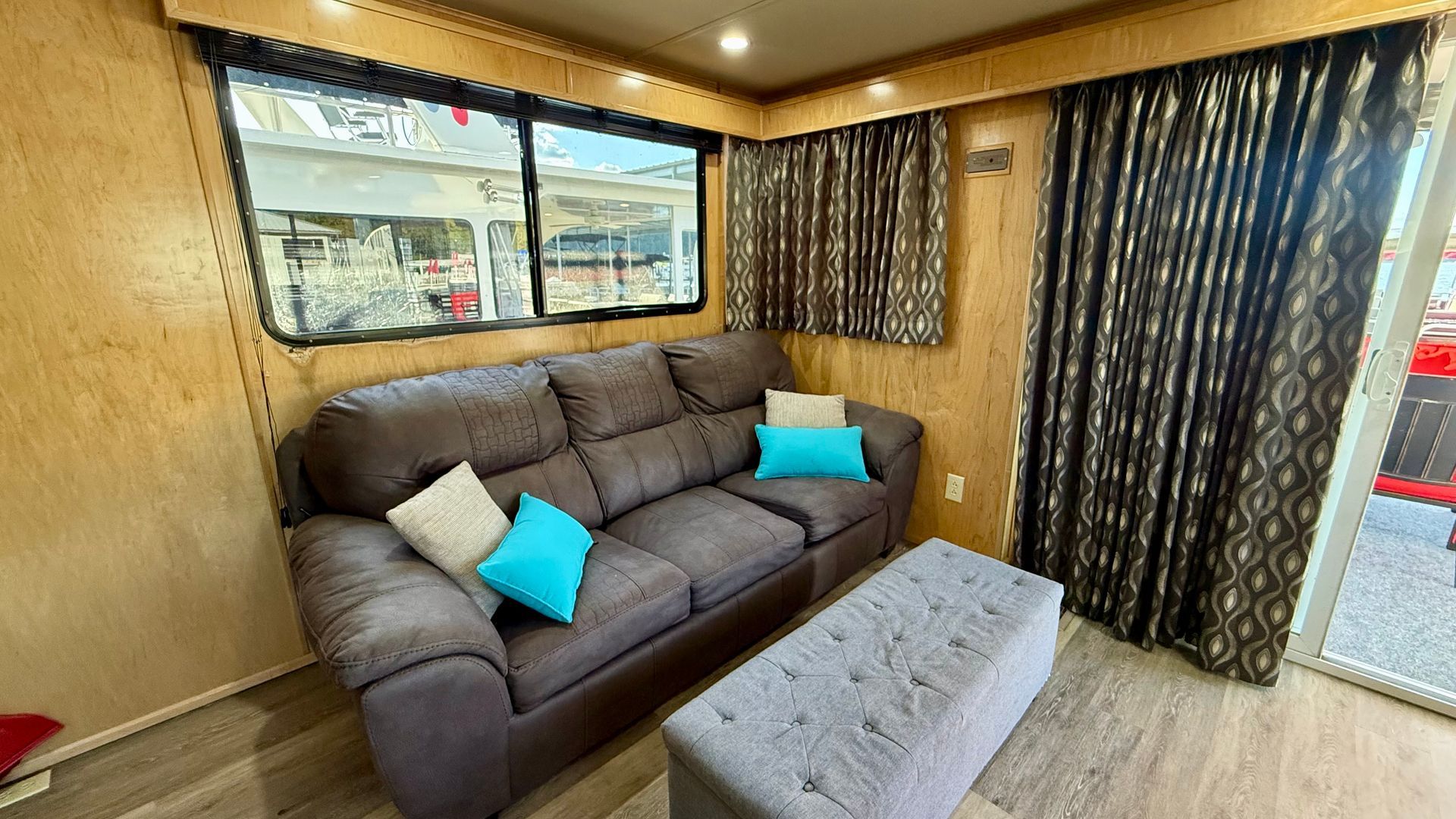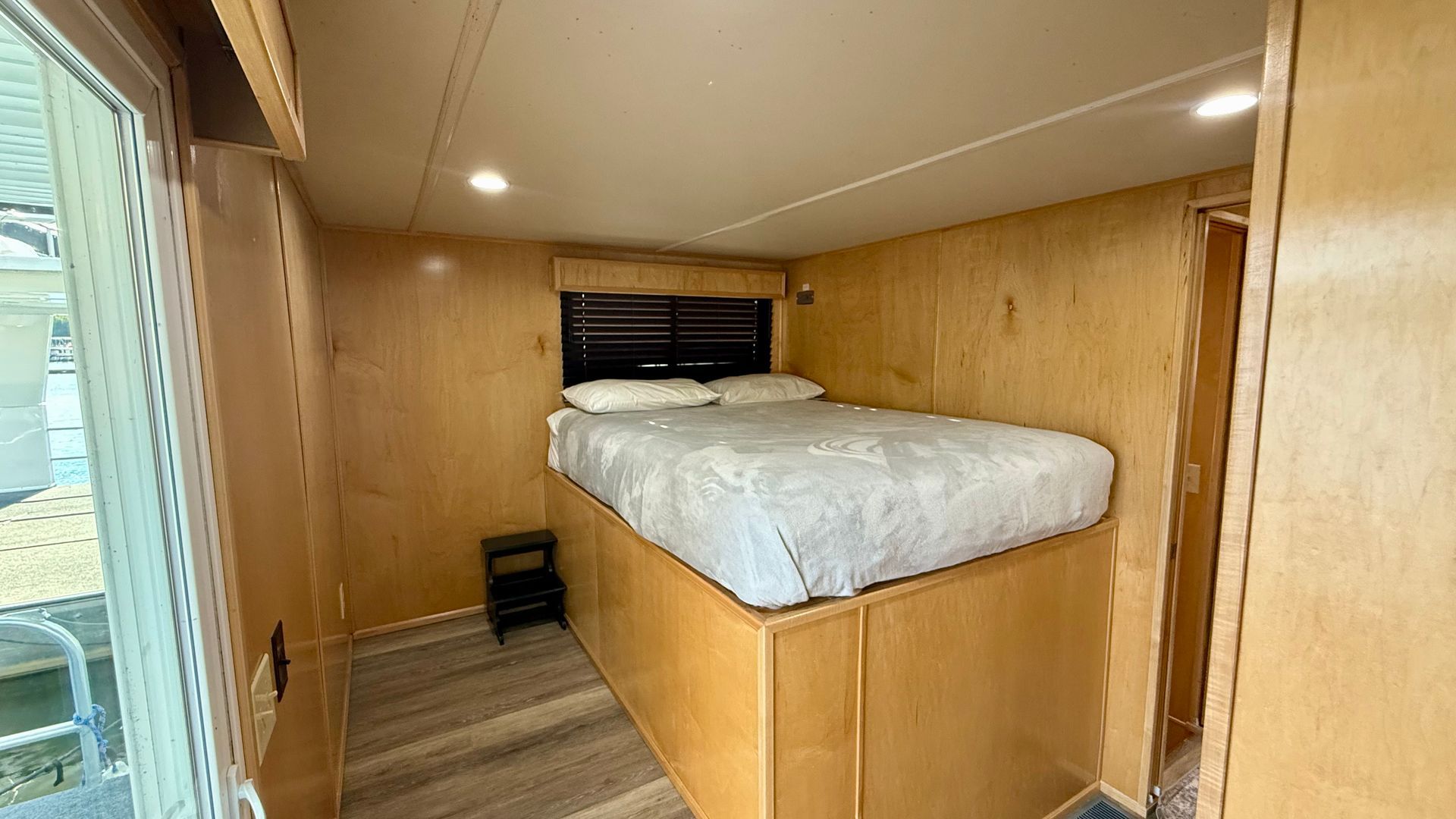 The Commodore is packed with premium features to enhance your stay, including a cuddy cabin, deluxe carpeting, and a full range of kitchen appliances such as a microwave, gas range, and refrigerator. Guests will enjoy the spacious deck furniture, ceiling fan, and the large sundeck, perfect for sunbathing and enjoying the views. With ample space, modern comforts, and water activities like the 15-foot water slide, this houseboat is designed to make every moment unforgettable.